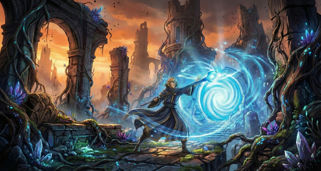 - VFX Integration: Visual effects for magical abilities, such as arcane particles and glow maps, are integrated using additive blending modes.
